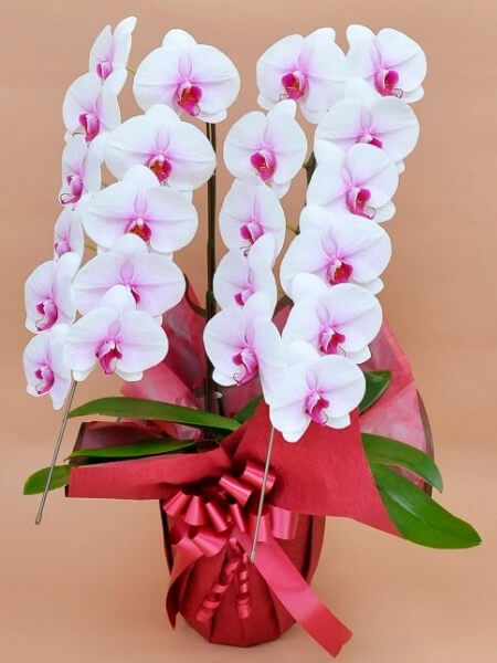 今回は還暦祝いなどの長寿のお祝いでは、どういった胡蝶蘭が定番なのかをご紹介します。とはいえ、長寿祝いなどの個人のお祝いでは、あまり定番にこだわらず、相手が喜びそうな花を選ぶこともお勧めします。