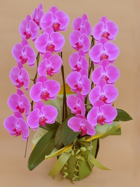 やはり長寿のお祝いにはピンクなどの花色がついた胡蝶蘭が人気です。