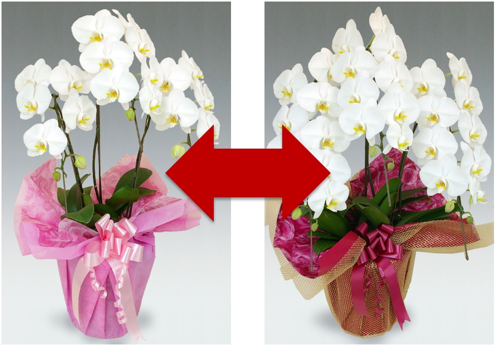 いずれも、胡蝶蘭を置くスペースが十分にあるため、大輪3本立胡蝶蘭よりも大きな胡蝶蘭が選択される例が多くなるのではないでしょうか。