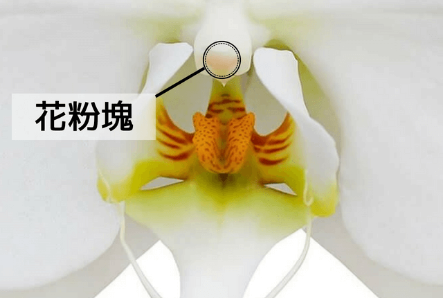 このように粘着体によって昆虫に花粉が運ばれる仕組みになっています。花粉塊が取れると、胡蝶蘭の花は役目を終えたと思い、花は枯れてしまいます。