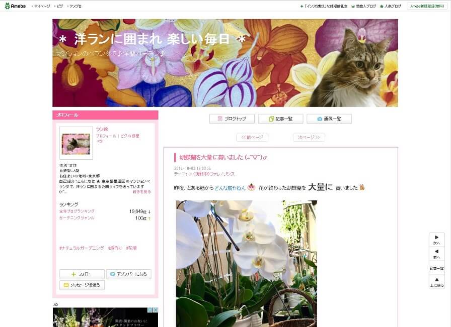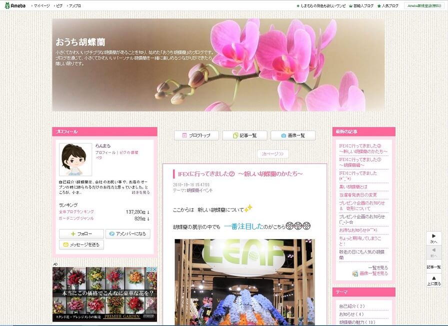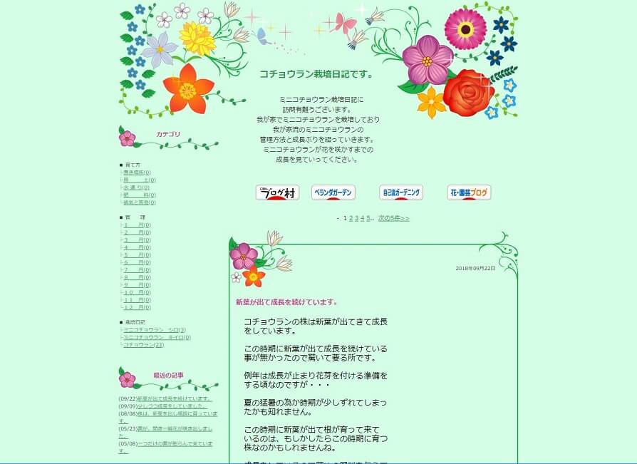 調べてみるとブログ内容は様々で、栽培記録のような胡蝶蘭だけを投稿している方はほとんどいません。思いのほか多かったのは、花屋さんなどが営業のために行っているものです。しかし、そういったブログを見ても面白くないので、営業目的ではなく良く胡蝶蘭や洋ランを載せているブログを紹介していきます。