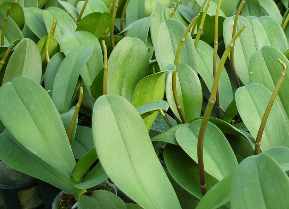気温が下がると、胡蝶蘭の生長はピタリと止まります。葉は伸びなくなり、根の生長も終え色が変化してくるかもしれません。